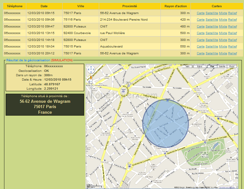 Plusieurs sociétés se sont lancées afin de surveiller leurs salariés, conjoint, etc. On peut même géolocaliser « en live » un numéro de téléphone portable depuis Internet.