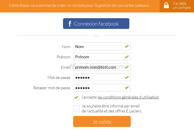L’étape suivante oblige le donateur à s’enregistrer au service pour gérer les cartes cadeaux émises ou à émettre. Cette étape est peu intrusive puisque seules quelques informations sont nécessaires. A noter qu’elle donne alors accès aux conditions générales du service. On y apprend notamment à l’article 8 « Tant qu’une CAGNOTTE n’a pas été utilisée pour l’achat de la CARTE-CADEAU et que le premier don a été effectué il y a moins de 60 jours, l’ORGANISATEUR a la possibilité de recourir à la fonction « annuler cette cagnotte« , disponible directement depuis la page de CAGNOTTE. En activant cette fonction, le compte bancaire de chaque PARTICIPANT sera recrédité intégralement et sans aucun frais. La CAGNOTTE ne pourra plus être créditée de nouveaux dons. Au-delà de 60 jours, l’ORGANISATEUR ne peut plus procéder à une annulation ou demande de remboursement.