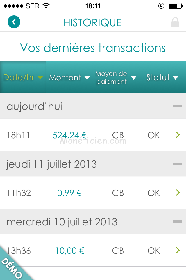 Parmi les applications, on trouve également les fonctions de caisse enregistreuse offrant la possibilité au commerçant d’accepter également les paiements par chèque et en liquide. La vidéo de présentation ci-après vous apporte plus de détails [Vidéo LCL] Monem Mobile.