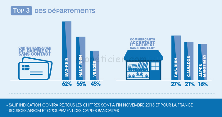 L’Alsace, le Calvados, les Alpes-Maritimes et la Vendée sont les meilleurs élèves du déploiement de la technologie sans contact en France. Nous reviendrons régulièrement sur ce sujet stratégique pour les établissements de paiement, les constructeurs et mainteneurs mais, aussi pour les commerçants et consommateurs finaux.